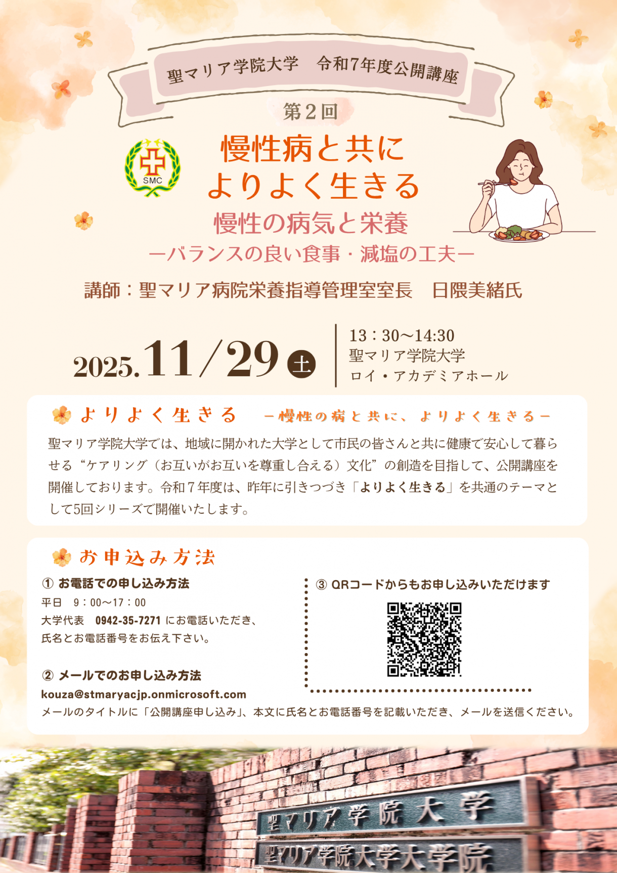 聖マリア学院大学 公開講座、受講者募集について
