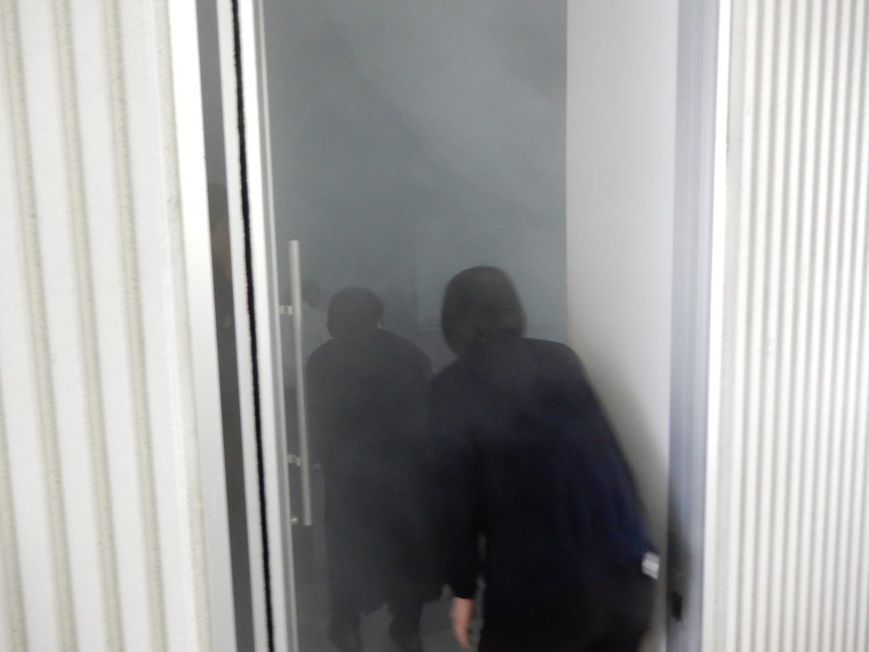 煙が充満した室内からの脱出体験を行いました。