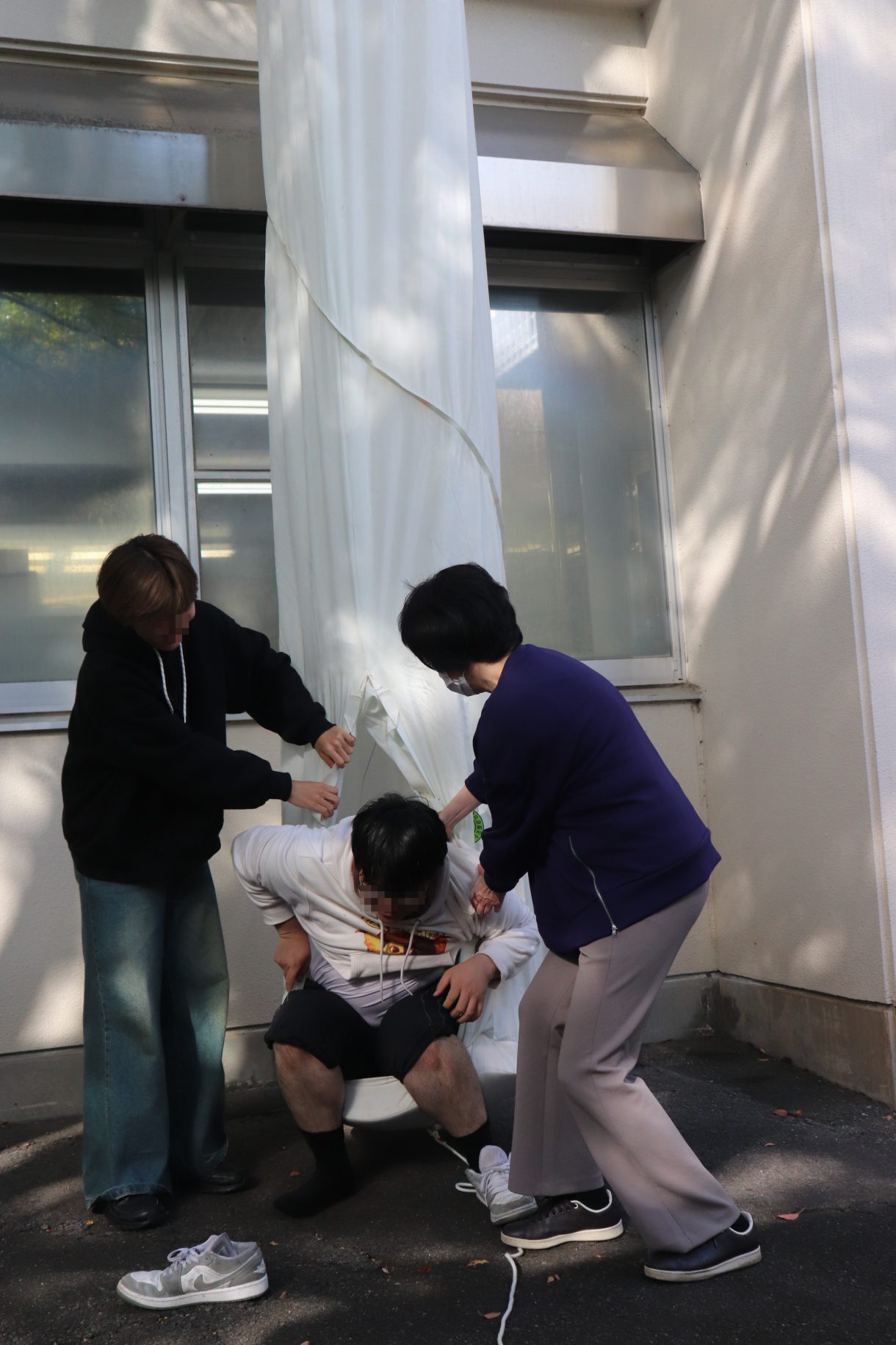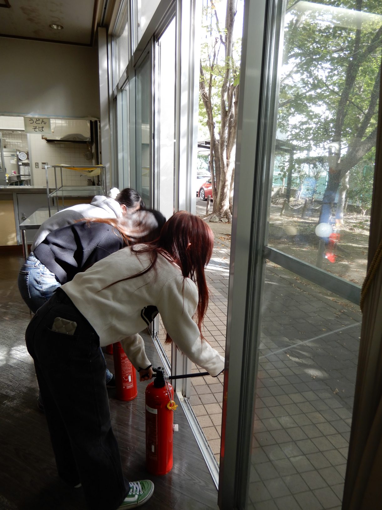 今回は火災を想定した訓練とし、最初に参加者全員で避難訓練を行い、その後に消火器・消火栓・避難袋の操作体験や、
