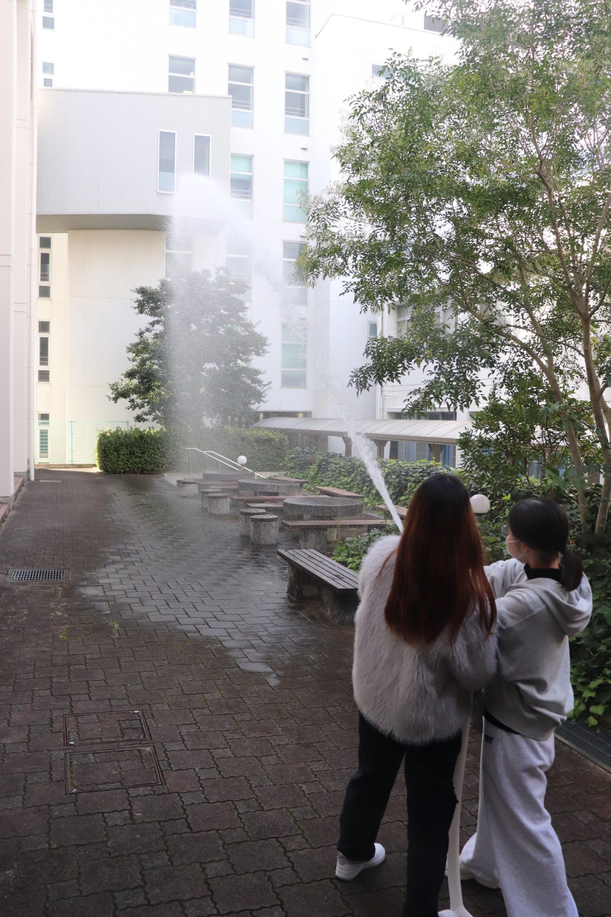 本学の消防訓練は、災害発生時の一連の活動要領を習熟することを目的として総合訓練として毎年実施しているもので、