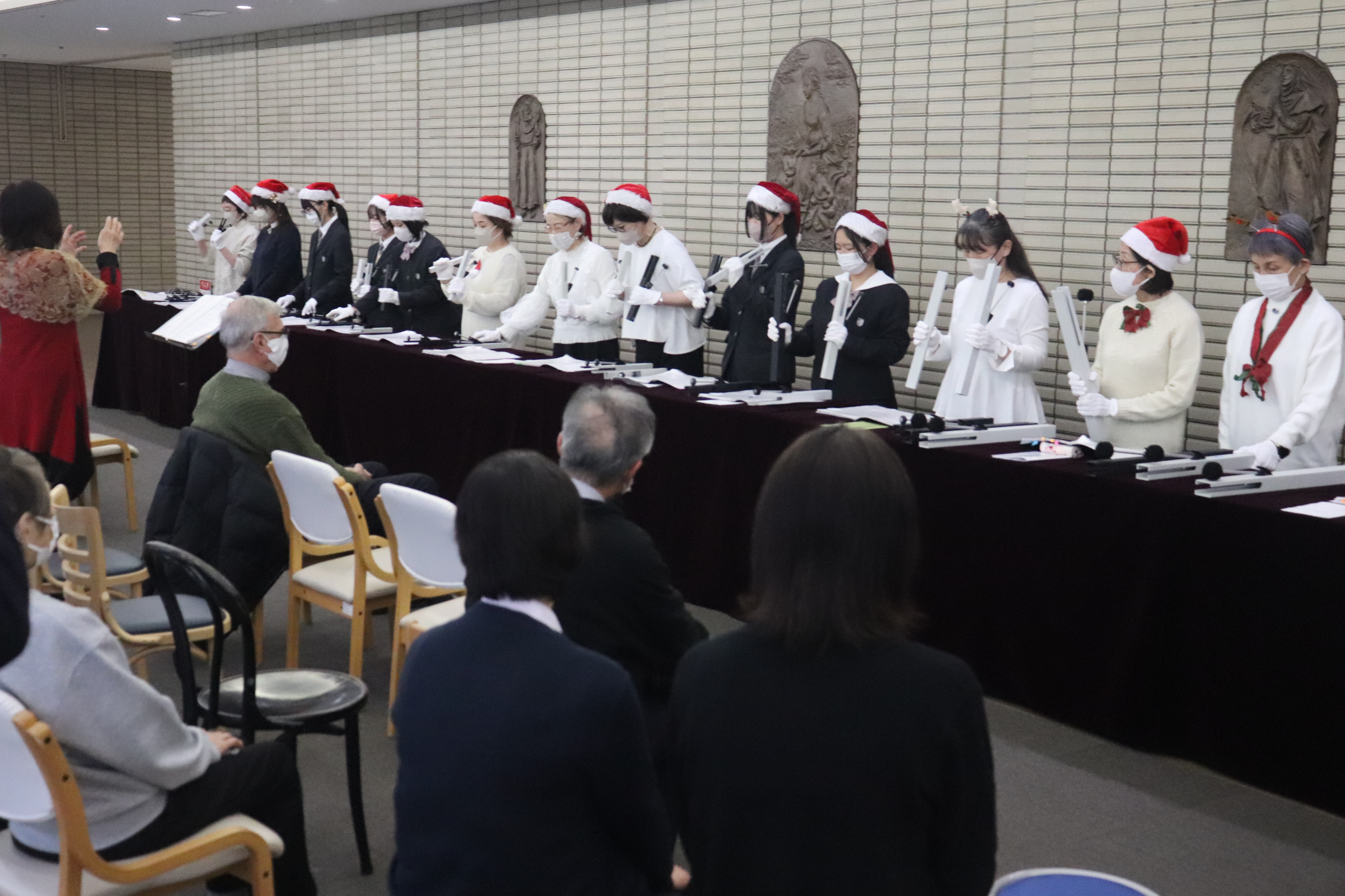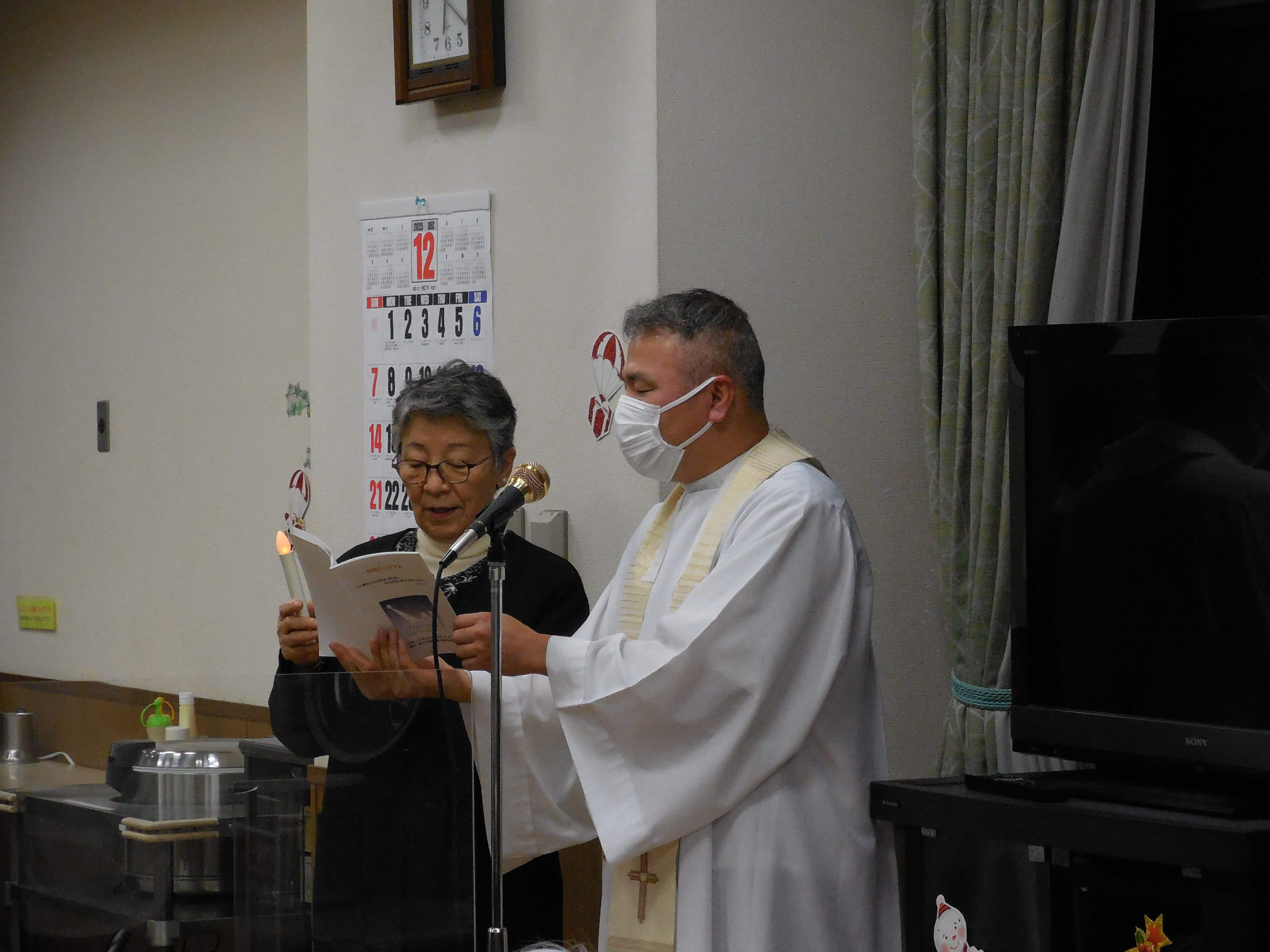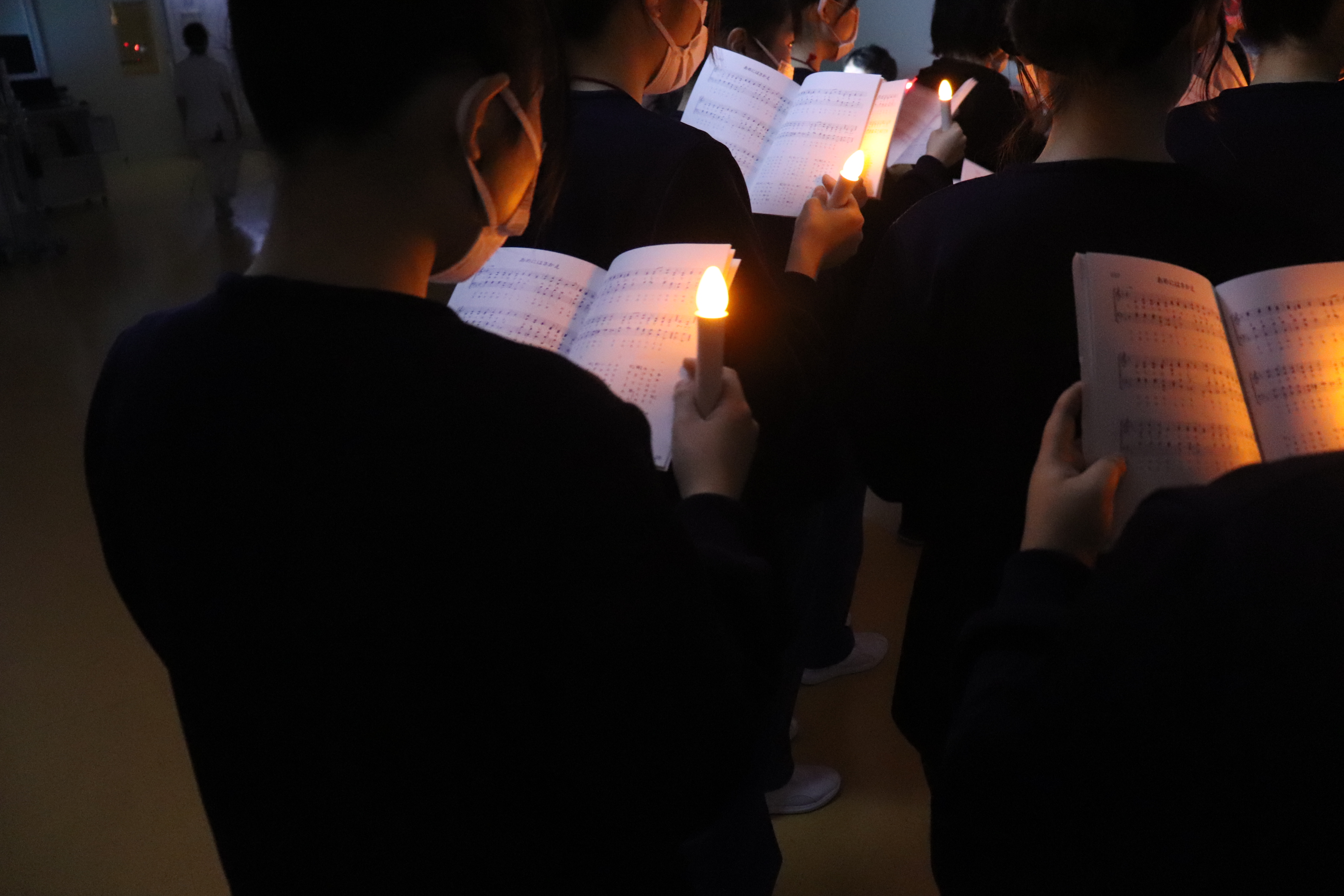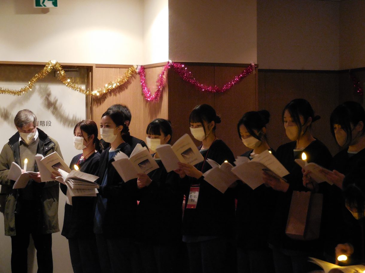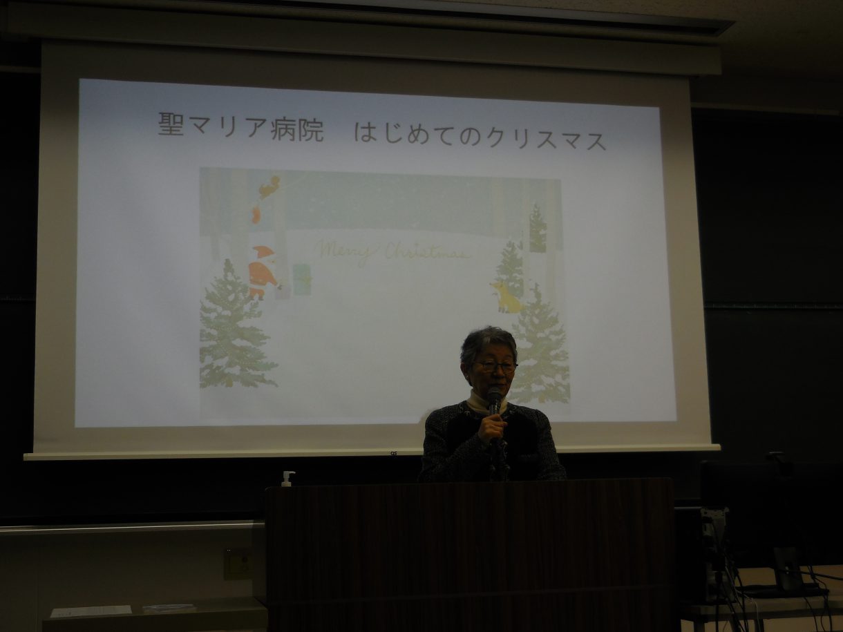 12月25日、聖マリアグループの合同クリスマス会が開催されました。クリスマスコンサート、キャンドルサービスが実施されました。聖歌隊は、聖マリア病院、聖マリアヘルスケアセンターの各病棟、聖母の家、メゾンマリアを訪ね、患者さんや入所者さんを見舞い、歌のプレゼントをお届けし、クリスマスの喜びを分かち合いました。
